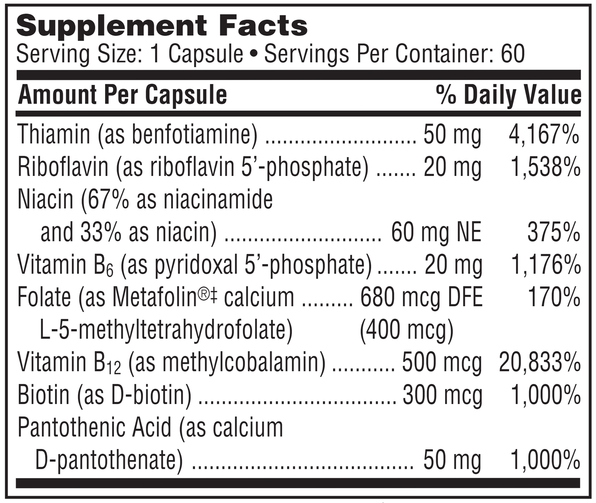 Active B Complex™ provides a full-complement of essential B-complex vitamins in high-potency amounts. Activated, coenzyme forms provide optimum B-complex vitamin support for individuals who may have difficulty metabolizing standard supplemental forms of B vitamins.