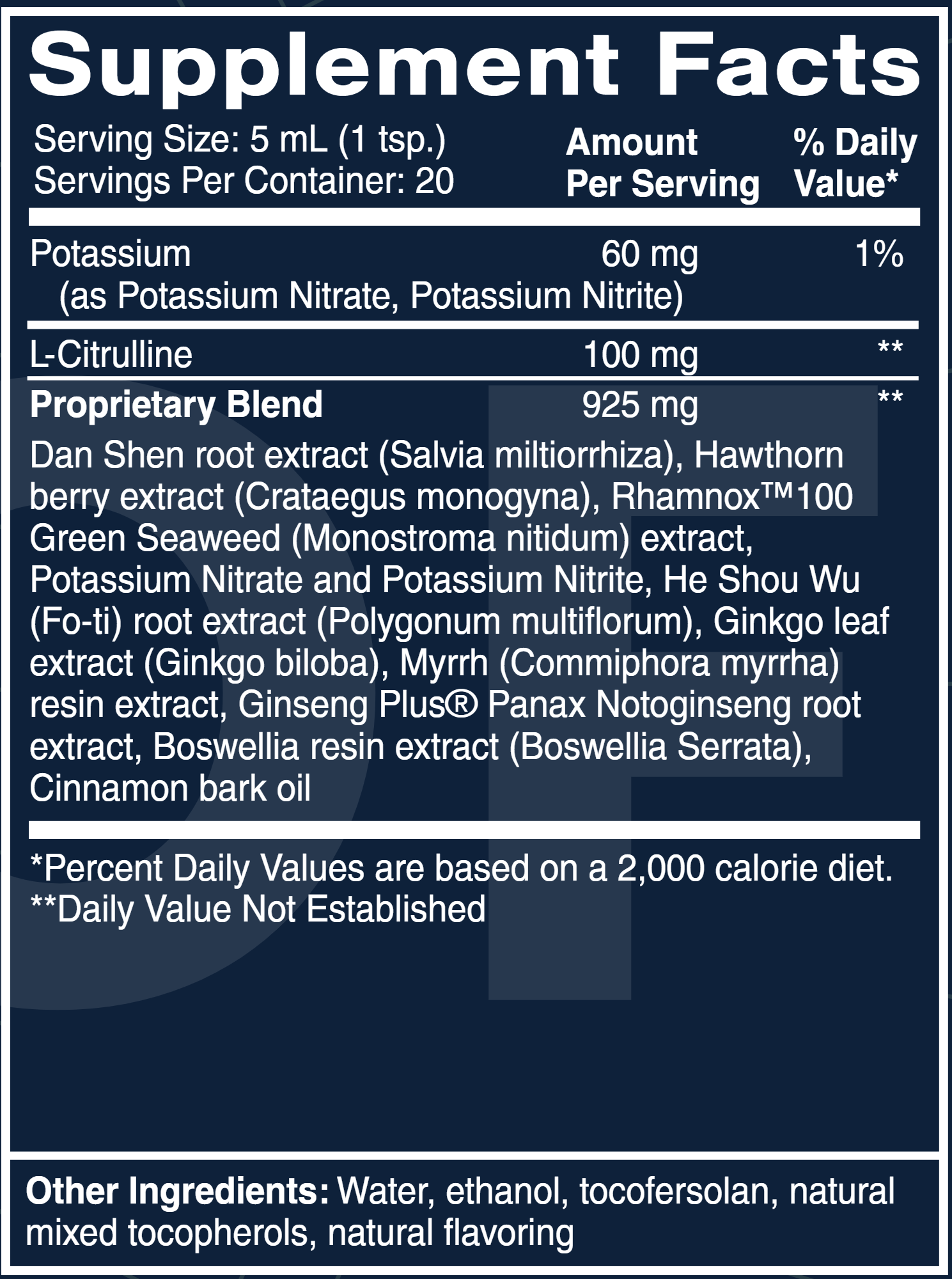 Cardio Elite is a blend of modern nutraceuticals and time-honored botanicals designed to support healthy blood pressure, nitric oxide (NO) production, vascular integrity, and micro and macrocirculation.